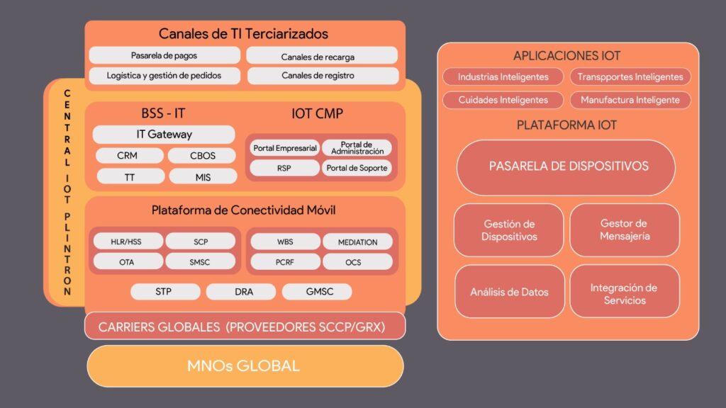 - La plataforma central Plintron IoT proporciona un entorno controlado para los servicios de IoT, como voz, SMS y datos, de modo que se evita el uso indebido o el fraude y se garantizan los ingresos.